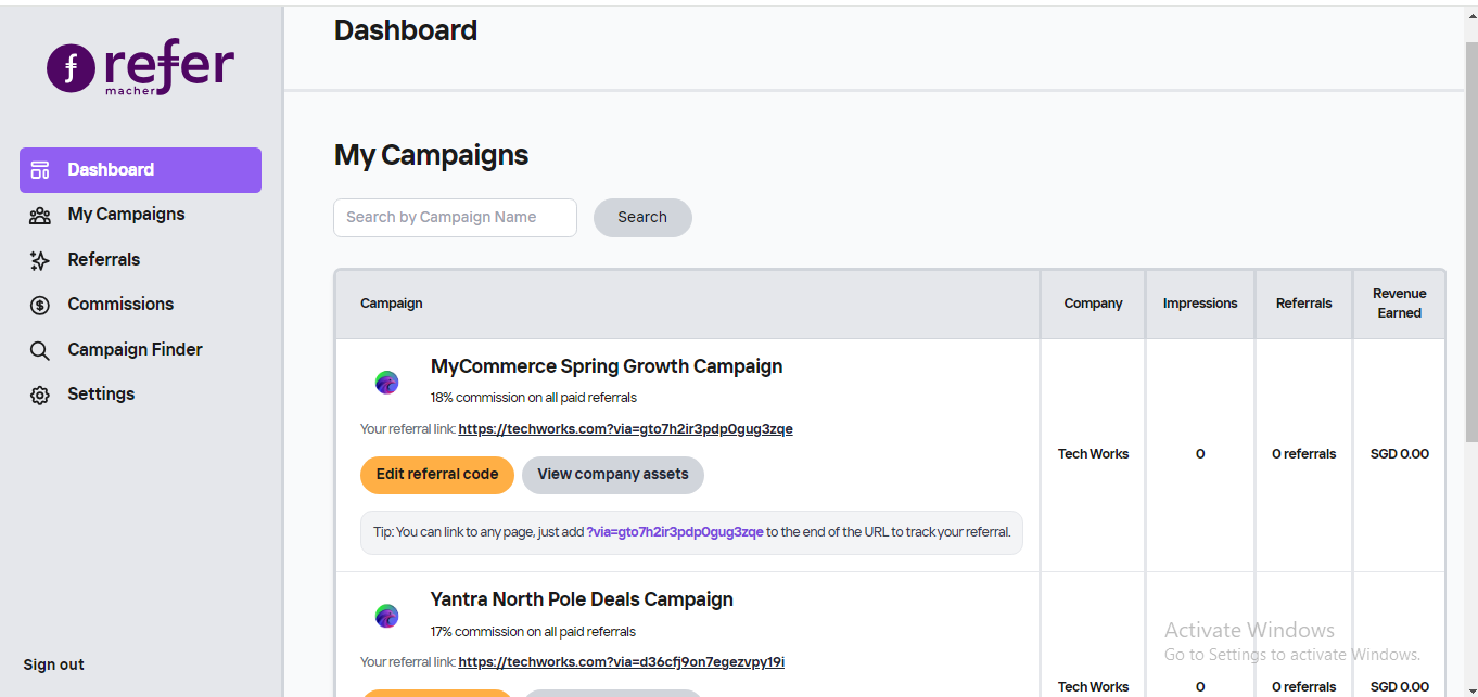 With Refer, for each campaign you create you can send potential affiliates your very own signup page and brand it with your logo and colours.